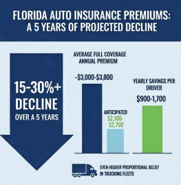 The table below illustrates projected average full coverage premium trajectories and potential savings under URGNs™ adoption (assuming accelerated penetration via smartphone integration, early Florida pilots, and reform tailwinds). Baseline assumes modest 3–5% annual growth/stabilization without URGNs™; URGNs™ scenario factors in 5–15% cumulative annual relief from prevention + litigation avoidance as coverage ramps (starting small in 2026 pilots, accelerating to 20–40% loss cost reduction by 2030 in covered areas).